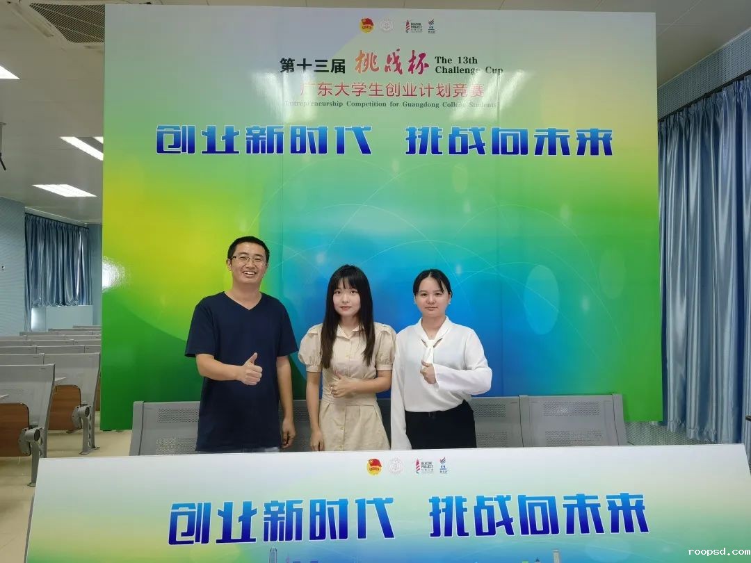 师学廷(左一)作为指导教师与第十三届“挑战杯”项目团队代表合影