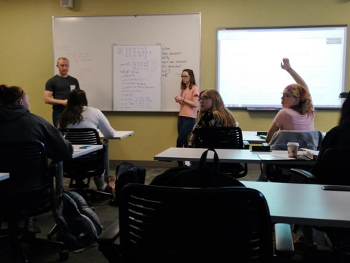 在拿撒勒大学(简称拿大)访学期间,不仅参与了英语语言学院的课程,根据自己的专业所需,还申请观摩了数学专业的课程。主要是《微积分》、《线性代数》和《基础统计学》三门课程。发现美国的学生都特别有自信心,在课堂上各抒己见,即使他们的想法有时候看起来并不成熟,但他们仍然敢于表达自己的观点。另一个印象深刻的点就是他们上课自由,老师不会上课点名。虽然有学生迟到,也有早退的,也有中途上洗手间的,但学生都静悄悄的走静悄悄的来,只要不打扰别人便可得到允许,只要坐在教室里听课,他们都非常认真。