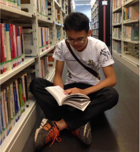 张秉天在图书馆查阅资料