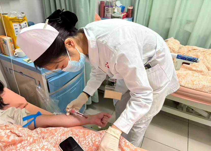 2月12日,正值春节前夕,张女士在儿子陪同下入院治疗。黄嘉莉第一时间主动上前搀扶,一边轻声安抚患者紧张情绪,一边细致询问既往病史、用药情况,规范为患者测量体温、血压、心率等生命体征,做好详细记录。随后,在带教老师指导下,她与郑贺岩默契配合,逐项核对患者信息、完善入院资料,细致做好术前皮肤准备、药物过敏试验等各项工作,全程动作规范、态度谦和,以其扎实的专业能力和贴心服务,赢得了张女士及家属的连连称赞。
