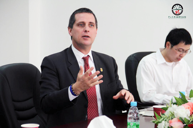 2014年1月8日上午,索尔兹伯里大学Brian博士和宋红专教授莅临我院东莞校区参观交流,并于实验楼②A302与学院“3+1”留学项目的学子进行探讨交流,为他们解答疑惑。