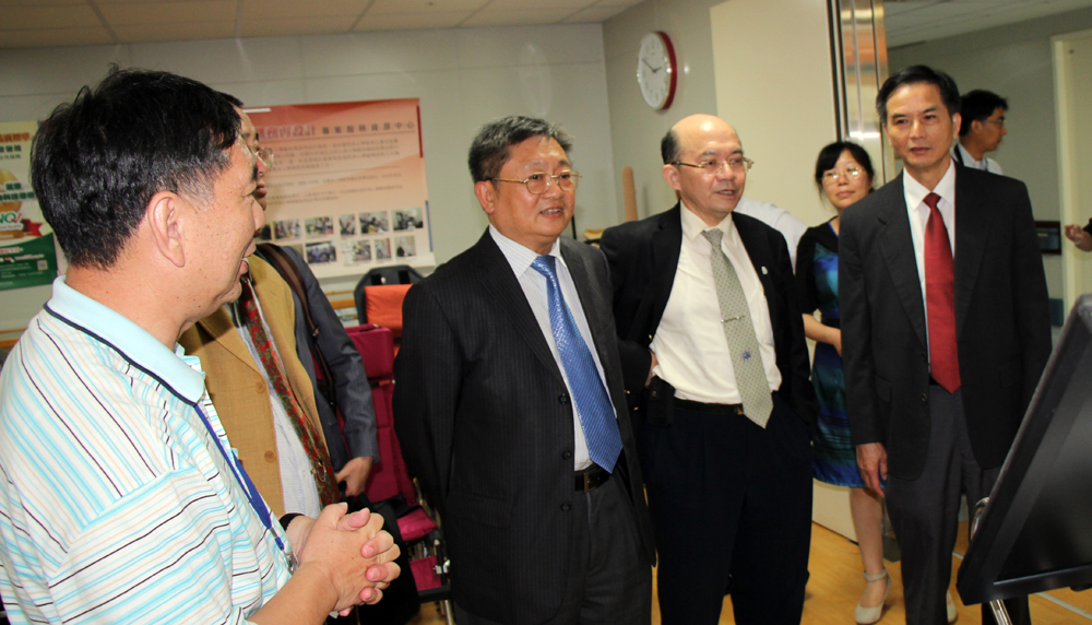 2014年6月24日,由王庭槐校长率领的学院代表团(副校长杨卫华、校长助理江沛、行政人事部部长丁艮平、财务工作部部长张华英、实验与信息管理部部长李伟林、学生工作部部长林秋贵、学科建设与合作交流部副部长李小梅、学科建设与合作交流部部长助理刘婉莉和行政人事部部长助理蔡舒钏)访问了台湾中山医学大学,受到了医学大学董事长周明仁教授,赖德仁校长,周明勇、周明智董事,中山医学大学附设医院总院长吕克桓博士等15位领导的热情欢迎。上午9点,在台湾中山医学大学正心楼1313会议室,校长赖德仁首先致欢迎辞并介绍了中山医学大学参会人员。王庭槐校长致辞并介绍了学院代表团全体成员。周明仁董事长致辞并介绍了中山医学大学创校沿革、机构设置及董事会的运行情况。赖德仁校长与王庭槐校长共同签署了“学术合作备忘录”,双方领导互赠礼品。上午10点,各对口单位的代表与代表团成员进行了交流。翁国昌院长介绍了各医学系概况及发展;周明勇董事介绍了牙医学院各系及系所的发展。健康管理学院院长黄怡嘉、医学人文学院院长白佳原、医学科技学院院长王祖兴等分别介绍了各学院概况。教务处邱慧玲教务长、研发处刘宏信研发长、国际事务暨校友服务处蔡淦仁国际长等介绍了各部门的概况。代表团与中山医学大学同行在师资培养、学生交换等方面的探讨取得了成果,在机构建设、管理理念等方面也进行了广泛的探讨。同时,代表团还与中山医学大学的领导在多项议题上进行了综合讨论交流。
