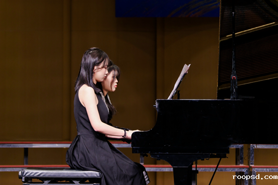 而曾子夏老师、商潆月老师与同学们共同呈现的四手联弹串烧《琴音双绝》无疑是演出的一大亮点,他们巧妙地串联起多首风格迥异的经典曲目,从神秘浪漫的音乐剧《歌剧魅影》到热情奔放的巴西音乐《雀鸟》,再到深情满怀的《唱支山歌给党听》,带领观众在音乐的海洋中畅游,领略了从古典到民族、从浪漫到激情的多元情感体验。