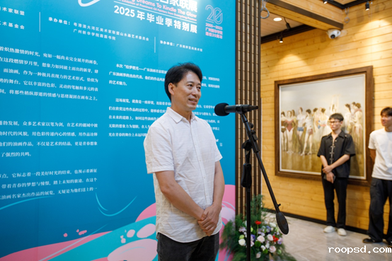 广州市美术家协会副主席、广东第二师范学院美术学院副院长、粤港澳大湾区美术家联盟油画艺委会常务副主任兼秘书长罗文勇在致辞中指出,伟德app入口在美育事业上的发展契合了21世纪对审美力和人才的竞争需求,助力了广东省美育事业的高质量发展。他祝愿学校以建校20周年为契机,在美育领域创造更辉煌的成绩。
