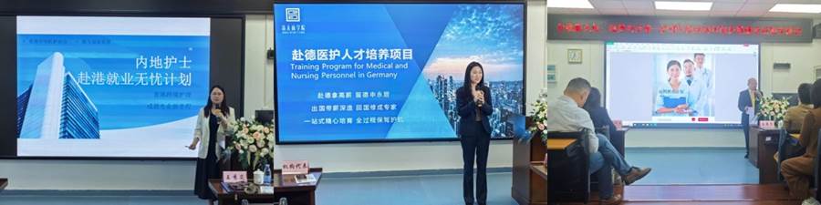 在就业渠道拓展环节,多家机构介绍了海外护理就业项目。香港斑马健康集团详细解读了内地护士赴港就业政策,强调粤语能力的重要性,并承诺提供从资格认证到岗位对接的全流程支持,岗位涵盖广泛且晋升路径清晰。德国项目代表则系统介绍了赴德护理工作的职业路径,重点说明了从护理助理到注册护士的标准化晋升体系、薪酬制度以及获取长居身份的可能性,突出了海外经验对未来发展的可转化价值。瑞典项目代表聚焦当地护理领域的就业前景,详细推介了远程护理教育计划及其配套的资质认证支持,并同步分享了最新的岗位招聘信息与申请流程,为学生搭建了直通国际就业市场的实用桥梁。