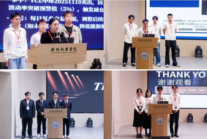、广州工商学院、广州华商学院、华南理工大学、湛江科技学院的14支参赛队伍按顺序上场进行展示及答辩。参赛选手们全神贯注,运用所学知识进行分析和决策,现场气氛紧张而热烈。