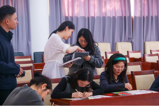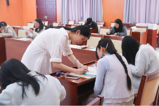 活动特别邀请了非遗剪纸传承人到现场授课。在授课现场,传承人结合自身的剪纸创作与教学经验,深入浅出地讲解了剪纸的历史渊源、文化内涵。在教学过程中,传承人采用“理论讲解+现场示范+手把手指导”的模式,从纸张对折、握剪姿势、下刀力度,到镂空技巧、线条把控,每一个步骤都细致拆解、反复示范,还耐心解答大家提出的疑问,针对每位教职工的操作难点逐一纠正,让零基础的女教职工也能快速掌握剪纸基本要领。
