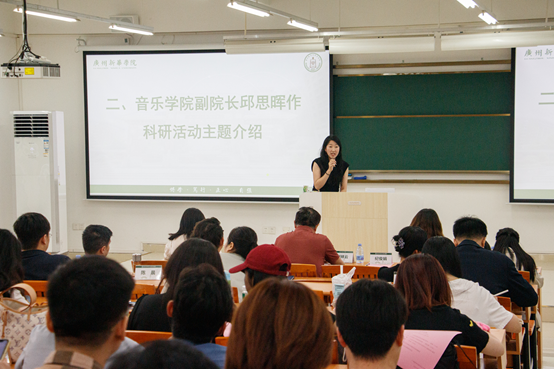 (以下简称“学校”)于东莞校区召开科研经验分享与政策解读专题研讨会。科研处处长谢祥云,音乐学院院长兼党总支书记纪俊娟、副院长邱思晖,音乐学院全体教职工出席本次会议。会议由学院办公室负责人周敬然主持。
