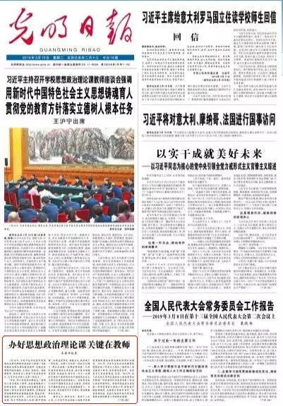 3月18日,习近平总书记在学校思想政治理论课教师座谈会上强调:“办好思想政治理论课关键在教师,关键在发挥教师的积极性、主动性、创造性。思政课教师,要给学生心灵埋下真善美的种子,引导学生扣好人生第一粒扣子。”