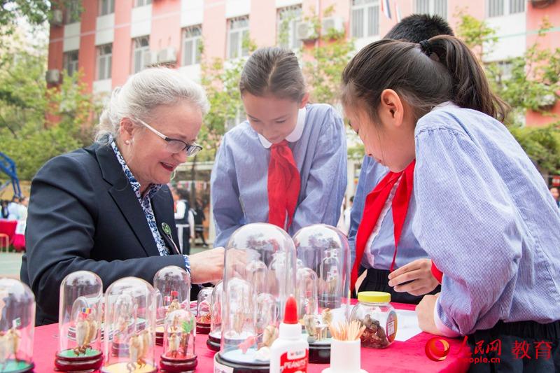 北京市朝阳区实验小学今年举办“‘一带一路’手拉手,‘一班一国’看世界”主题实践活动,多名外国友人体验中国传统文化项目。 卢静摄