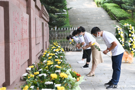 支部的党员同志们神情肃穆,缓步拾级而上,将寄托着敬意和哀思的黄白菊花摆放在烈士墙前,驻足沉思,并鞠躬默哀,深刻追思为民族独立、人民解放英勇牺牲的民族英雄与革命先烈。