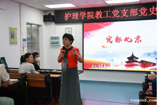 9月17日,护理学院教工党支部举行党史专题党课学习,党支部书记王秀岚教授以《定都北京——新中国首都的选择》为主题开讲专题党课。护理学院全体教工党员参会学习。