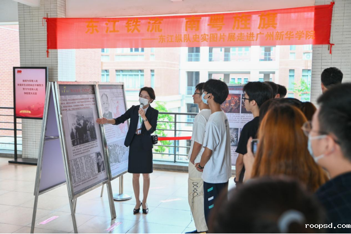 升级后的党员之家“三区二坊一展厅”之——党史教育展厅,图为11月2日学校特邀广东东江纵队展览馆讲解员陈梦来我校为师生讲解《东江铁流 南粤旌旗》主题展览。