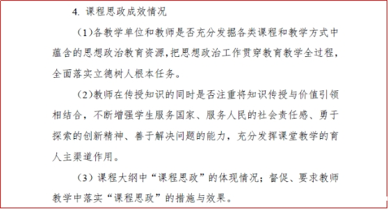 三是健全考核机制,建强课程思政主力军。“好的老师站在讲台上就是一种课程思政。”教师是基层组织宣讲党史学习教育的主力军,也是“课程思政”建设的关键。为此,教务处将“课程思政”成效纳入期中教学检查之中,引导全体教师树立“课程思政”意识、开展“课程思政”教学改革。