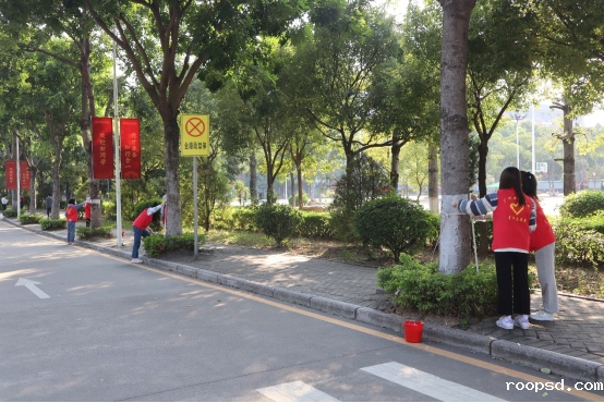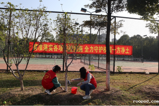 在党员同志和志愿者们的共同努力下,校道两旁的树木都换上了冬季专属“新衣”,为冬日bv伟德体育app官网校园增添了一抹暖色。