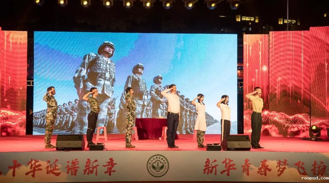 同一时间,跨越校区。穗莞两校区迎新晚会表演精彩纷呈,给现场全体观众带来了一场视觉、听觉盛宴。舞台上闪耀的灯光、舞台下闪动的荧光棒,使得现场气氛青春激昂,全场观众激情澎湃。演员们通过表演彰显热血青春,为新生开启大学精彩生活新篇章,为庆祝中华人民共和国成立七十周年增添光彩。