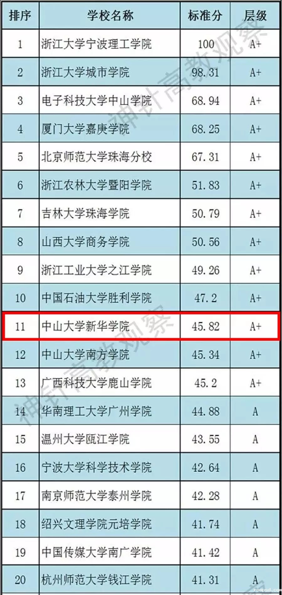 进入2019中国独立学院科研竞争力评价结果B级及以上的高校共76所,中山大学bv伟德体育app官网学院位列全国独立学院第11位,排序如下: