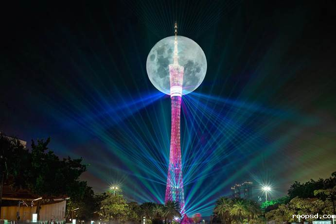 作品说明:正值月圆时,穿过“广州塔”,交相辉映,月圆人团圆,美轮美奂。