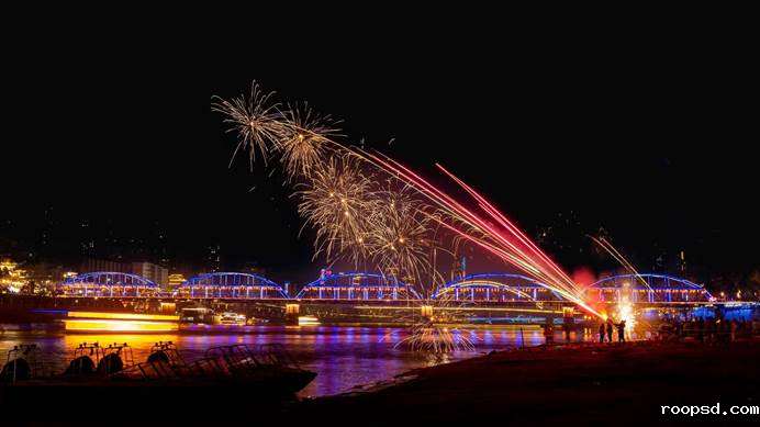作品说明:这张照片拍摄于兰州百年铁桥“中山桥”,正值春节,照片中,人们燃放着绚烂的烟花在中山桥上空绽放,与古老的桥梁形成鲜明对比,展现了传统与现代的完美融合。表现出节日欢愉的氛围。