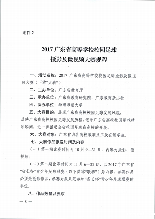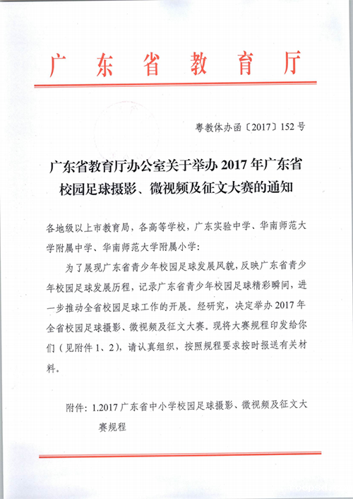 附件:广东省教育厅办公室关于举办2017年广东省校园足球摄影、微视频及征文大赛的通知