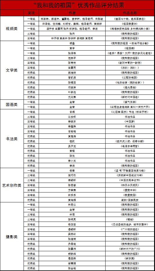 附:“我和我的祖国”获奖作品名单