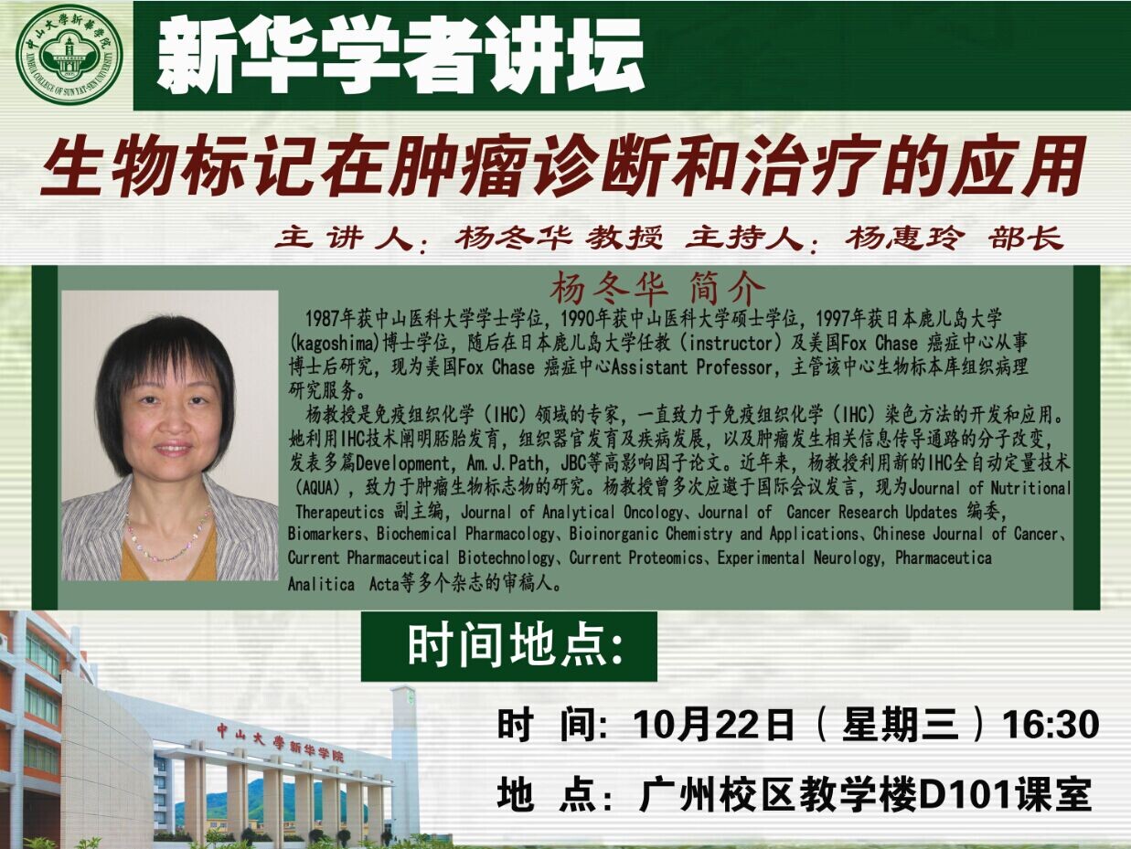 [学者讲坛]杨冬华主讲:生物标记在肿瘤诊断和治疗的应用