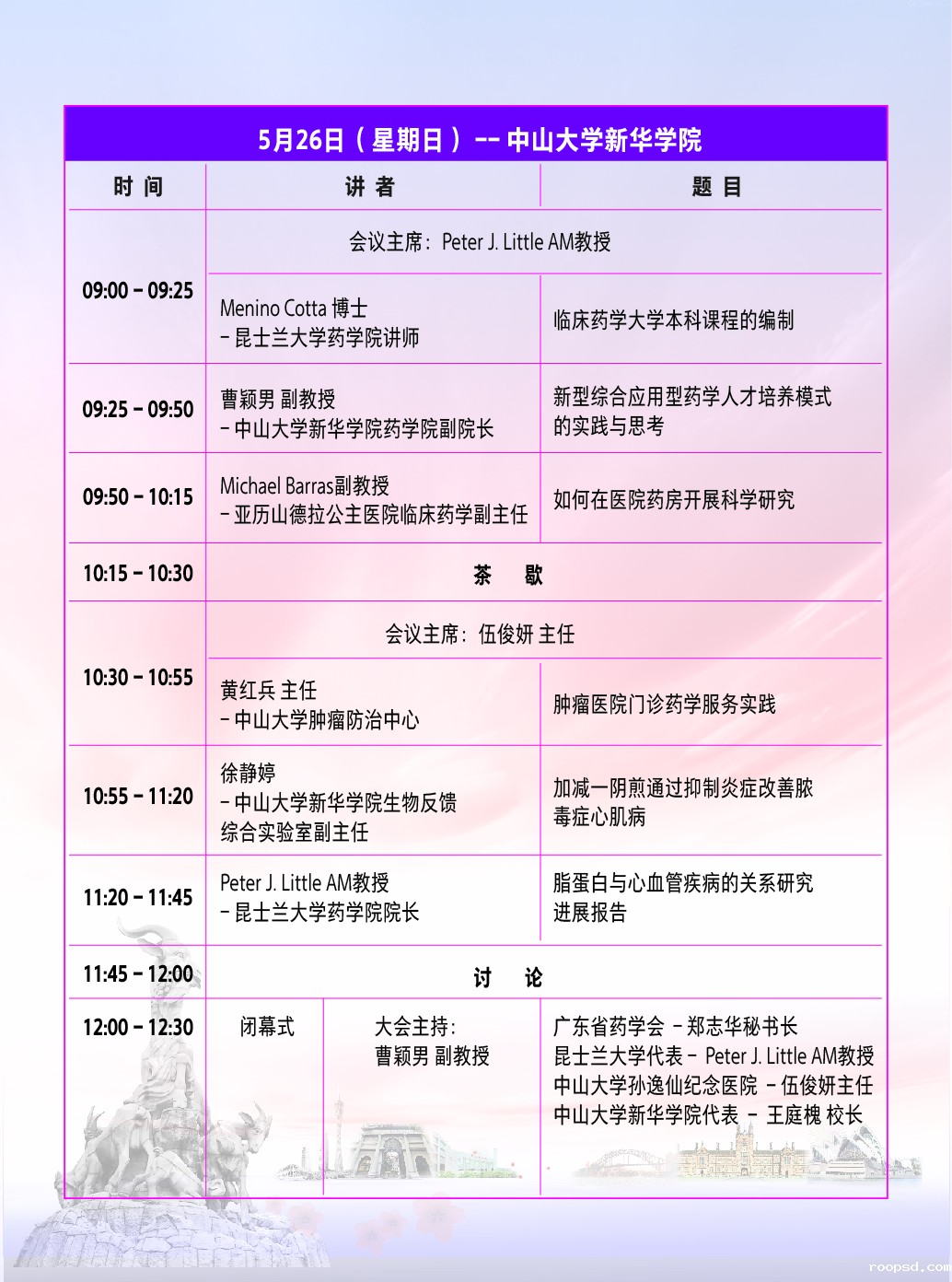 2.介绍目前澳大利亚昆士兰和广东临床药学发展状况,探讨临床药师培养模式、医院药学工作实践开展等。
