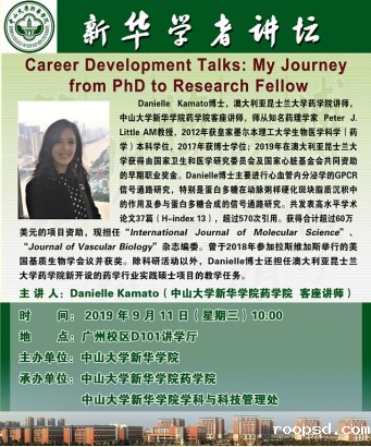 Danielle Kamato博士,澳大利亚昆士兰大学药学院讲师,中山大学bv伟德体育app官网学院药学院客座讲师,师从知名药理学家Peter J. Little AM教授,2012年获皇家墨尔本理工大学生物医学科学(药学)本科学位,2017年获博士学位;2019年在澳大利亚昆士兰大学获得由国家卫生和医学研究委员会及国家心脏基金会共同资助的早期职业奖金。Danielle博士主要进行心血管内分泌学的GPCR信号通路研究,特别是蛋白多糖在动脉粥样硬化斑块脂质沉积中的作用及参与蛋白多糖合成的信号通路研究。共发表高水平学术论文37篇(H-index 13),超过570次引用。获得合计超过60万美元的项目资助,现担任“International Journal of Molecular Science”、“Journal of Vascular Biology”杂志编委。曾于2018年参加拉斯维加斯举行的美国基质生物学会议并获奖。除科研活动以外,Danielle博士还担任澳大利亚昆士兰大学药学院新开设的药学行业实践硕士项目的教学任务。