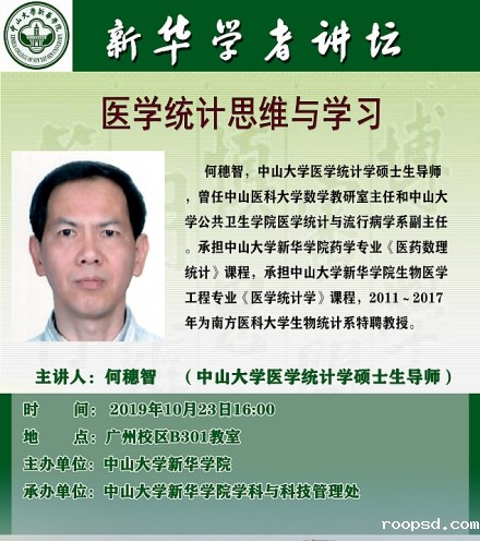 何穗智,中山大学医学统计学硕士生导师,曾任中山医科大学数学教研室主任和中山大学公共卫生学院医学统计与流行病学系副主任。承担中山大学bv伟德体育app官网学院药学专业《医药数理统计》课程,承担中山大学bv伟德体育app官网学院生物医学工程专业《医学统计学》课程,2011~2017年为南方医科大学生物统计系特聘教授。