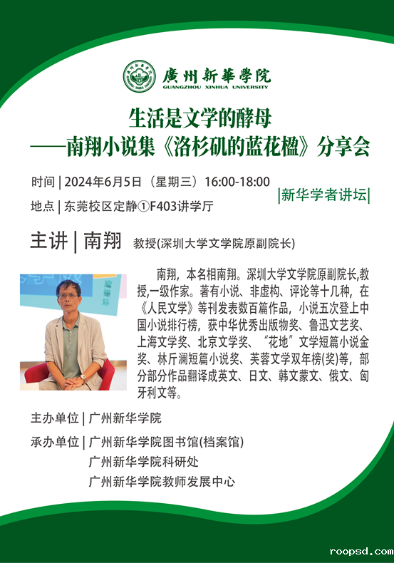 [学者讲坛]南翔教授:生活是文学的酵母——南翔小说集《洛杉矶的蓝花楹》分享会