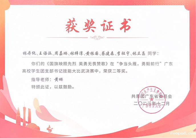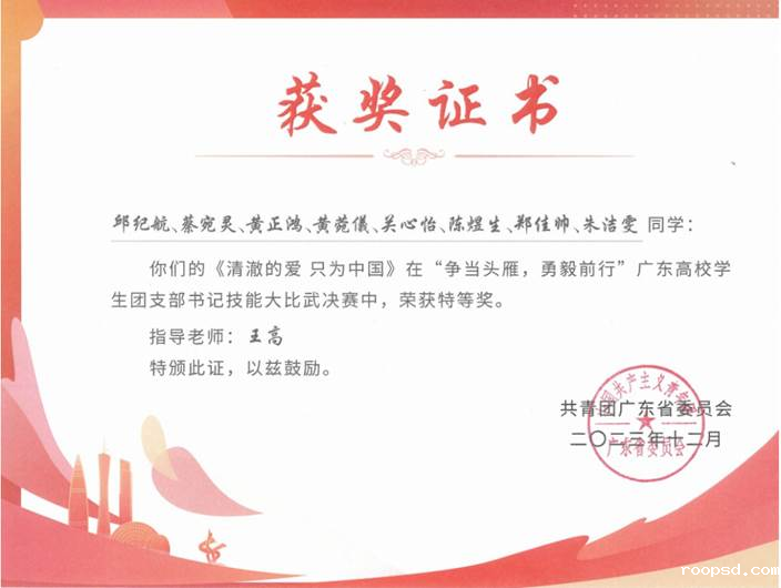 近日,2023年“争当头雁、勇毅前行”广东高校学生团支部书记示范培训班技能大比武决赛获奖名单公布,伟德app入口师生团干部荣获特等奖1项、二等奖1项。