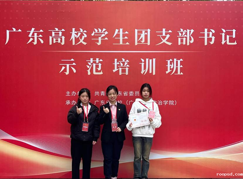 广东高校学生团支部书记示范培训班于2023年12月在广东省团校举办。学校团委副书记黄琳老师、2023级会计学专业黄菀儀同学、2023级网络与新媒体专业陈慧同学参加培训。在微团课技能大比武决赛中,黄菀儀所在团队的微团课《清澈的爱 只为中国》斩获特等奖,黄琳指导团队的微团课《国旗映照先烈 英勇无畏赞歌》斩获二等奖。
