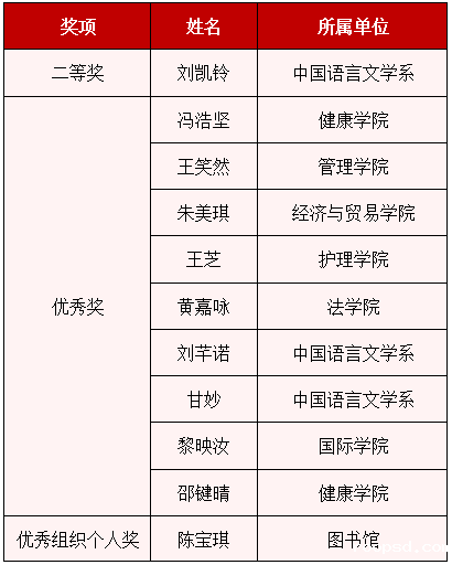 6月22日,2024年广东省高校图书馆“学问杯”影评大赛颁奖典礼在暨南大学番禺校区举行。我校中国语言文学系刘凯铃同学获大赛二等奖,9名同学的作品获大赛优秀奖;我校图书馆获优秀组织奖,图书馆副馆长陈宝琪获优秀个人组织奖。