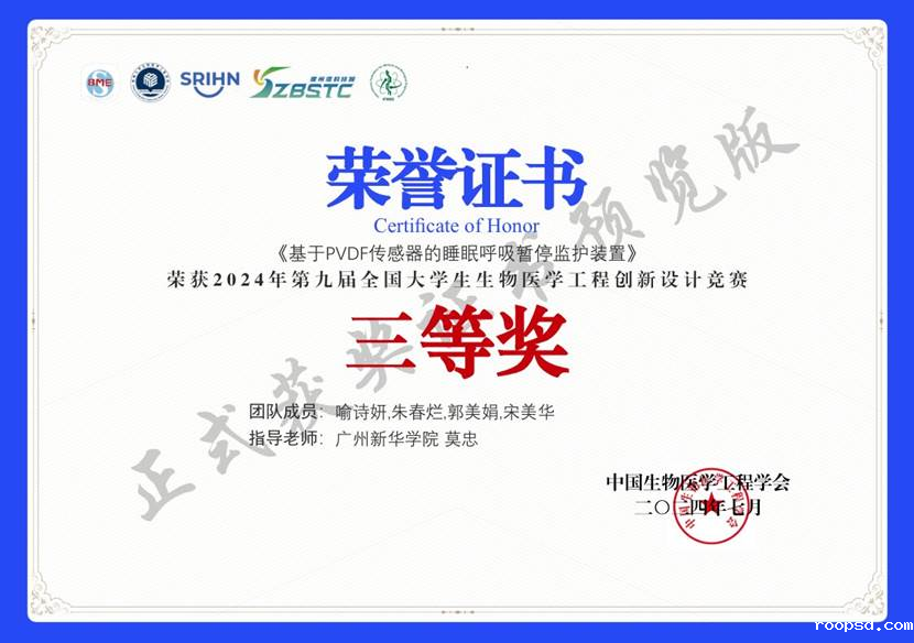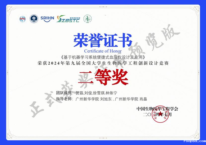 奖项:第九届全国大学生生物医学工程创新设计竞赛三等奖