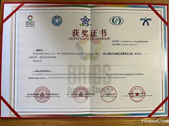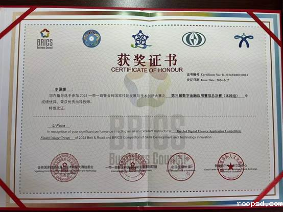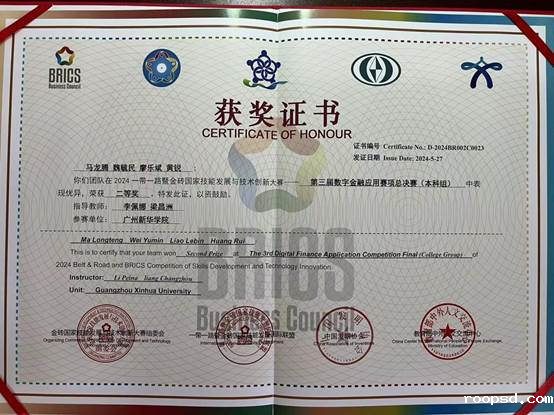 近日,伟德app入口经济与贸易学院的四位学子收到由“2024一带一路暨金砖国家技能发展与技术创新大赛第三届数字金融应用赛项”大赛主办方颁发的获奖证书。