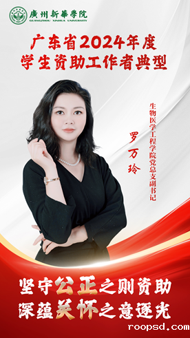 罗万玲,生物医学工程学院党总支副书记,原学生资助中心主任,从事学生资助工作10年,被评为“广东省资助先进工作者”;参编教材3本;发表论文5篇,其中资助工作相关论文3篇;参与校级以上课题12项,其中省级课题5项;获校级及以上奖项23项,获广东省高校学生资助工作课题成果二等奖、三等奖。