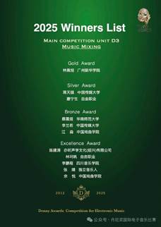 林晨旭此次以扎实的影视录音功底夺得2025第六届丹尼奖国际电子音乐比赛D3金奖,是学校信息与智能工程学院“厚基础、强交叉、重实践、促创新”育人理念的生动注脚。接下来,学校将持续整合校企资源、国际平台与学科竞赛优势,打造更高水平的创新实践生态,为更多学子搭建走向世界的舞台,力争培养更多具备全球视野、创新精神和实践能力的高素质应用型人才。