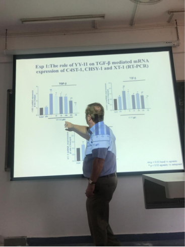 7月12日下午,澳大利亚昆士兰大学药学院院长、我校药学院首席教授Prof. Peter J. Little AM在广州校区举办了主题为“The effect of YY-11 on TGF-β mediated GAG chain elongation in human vascular smooth muscle cells”(YY-11对人类血管平滑肌细胞TGF-β介导的GAG链延长的影响)的讲座。药学院副院长张素中副教授、药学院教师代表参加,讲座由药学院办公室主任曹颖男博士主持。