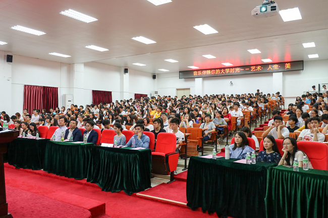 杨教授认为音乐的基础是通过日积月累所形成的,应用性、技能性学科都必须首先打好专业的基础,有扎实的专业基础才能在专业上有长足发展。接着,他引导学生们思考“在大学阶段,学习什么才是最重要的?”他认为,在大学阶段,有四种能力是必须培养的:第一种是决策能力,要有主见,学会判断眼前的事情该不该做、某个朋友该不该结交;第二种是取舍能力,取,是一种领悟。舍,更是一种智慧,懂得有舍才有得;第三种是社交能力,在大学生涯中建立良好的人际关系;第四种是审美能力,对美的追求会很大程度上影响我们今后的生活,拒绝低级趣味,培养高雅的生活品味。他还教导同学们要掌握扎实的专业知识,在“自我”的同时要无私地为他人、为家庭、为社会做贡献。而这正符合王庭槐校长的教学理念——紧密围绕“为谁培养人、培养什么人、怎样培养人?”的核心问题,深入思考“如何培养一个完整的人、一个热爱生活的人、一个幸福的人?”的教育内涵问题,将美育视为高等教育不可或缺的重要一环。