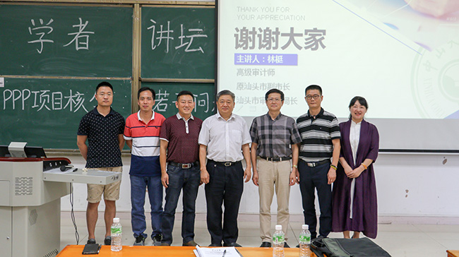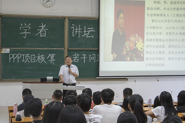 王庭槐校长对讲座给予高度重视并为讲座致辞,首先王校长对林梃教授的到来表示热烈欢迎,并对林梃教授作简单介绍,王校长说:“林梃教授曾去美国哥伦比亚大学进修,历任汕头市审计局长、汕头市政府秘书长、副市长等职,是一位具有丰富审计实践经验的专家型领导,其对PPP项目研究颇深。”王校长希望大家珍惜这次难得的学习机会,借此拓展专业视野、提升专业认识。