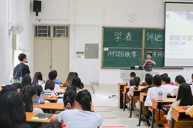 学院主办,学科与科技管理处、会计学院承办的主题为“PPP项目会计核算若干问题的探讨”的讲座在我校东莞校区精彩开讲。此次讲座由审计专业学科带头人(工程应用)林梃教授主讲,常务副院长林源副教授主持,王庭槐校长出席讲座,会计学院师生参加讲座。