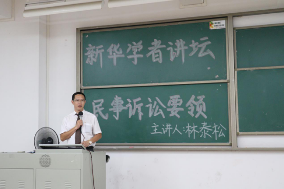 6月14日,国信信扬律师事务所主任林泰松律师前来我校东莞校区展开主题为《民事诉讼要领》的专题讲座,法律学系副主任李岚及师生代表参加。