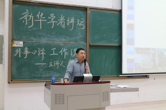 詹成教授运用自己从事口译教学以及口译实践的切身经验,向在场师生阐述了站稳立场、把握政策、熟悉业务、严守纪律等外事的基本准则,并且归纳出外语口译工作中所需要的sense of mission(使命感)、sense of responsibility(责任感)、sense of fulfillment(成就感)和sense of urgency(紧迫感)的外事四大意识,使在场师生们感触良多。