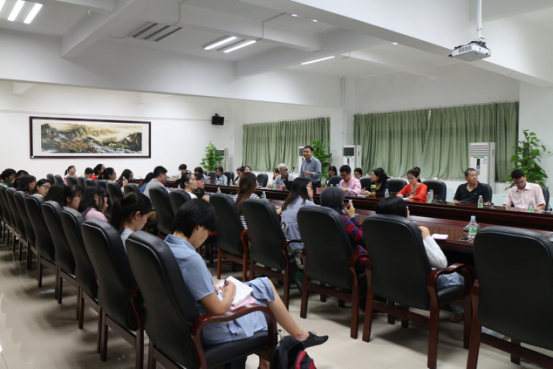 10月19日下午,广东外语外贸大学高级翻译学院副院长詹成教授应邀来到我院东莞校区,开展题为《口译教学的理念、原则和课程设置》的教师专场讲座。外语系全体教职员工及部分学生代表共同聆听了本场精彩的讲座。讲座由外语系副主任黄继炎主持。