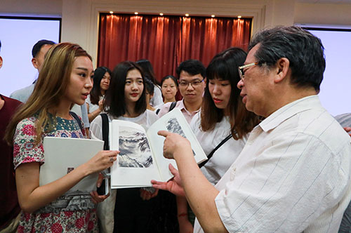 新媒体互动,许钦松大师向学生赠送其山水艺术作品集