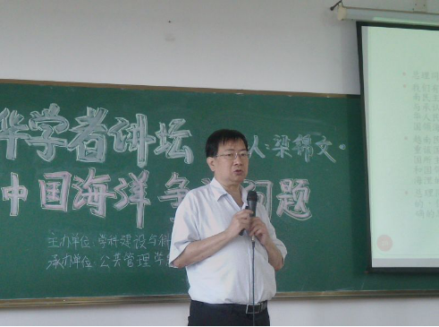 梁锦文教授首先分析了南海所处地理位置,介绍南海周边许多国家的概况,讲述各国对南海疆界的主张。通过例举中国历代统治者对南海的统治政策,阐明南海是中国的历史性水域,并以独特的视角解析出现争议的原因。