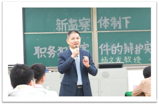 仪式结束后,杨文龙教授作主题为“新监察体制下,职务犯罪案件的辩护实务”的学术讲座,他以律师角度为大家分享新监察体制下职务犯罪案件中的经验和常识。