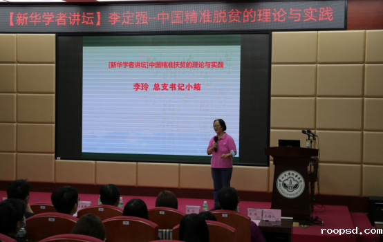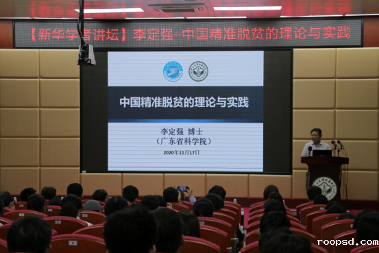 李定强以新中国成立以来的扶贫历程为引,点明了中国精准脱贫的背景,讲解了精准脱贫的理论,指出精准脱贫要做到“六个精准”和“五个一批”,精准脱贫不能仅注重在当代取得一定绩效,还需注重为子孙后代求福利谋发展。