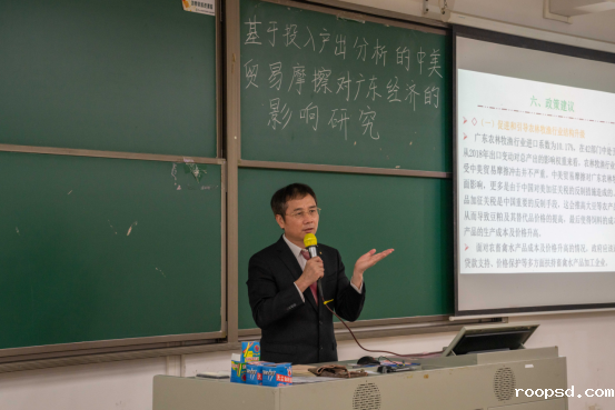 讲座现场,夏南新介绍了贸易战的概念,并系统回顾了中美贸易摩擦的历史背景,剖析了中美两国加税的核心原因和总体趋势,分析了中美贸易摩擦对中国出口贸易的影响,并以建立计量模型为依据量化了中美贸易摩擦对广东出口贸易与行业总产出的影响程度,评估了中美贸易摩擦中的美国对中国加增关税对广东出口的影响。