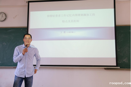 王震给师生作题为“抑郁症患者工作记忆内情绪刺激加工的特点及其机制”学术讲座